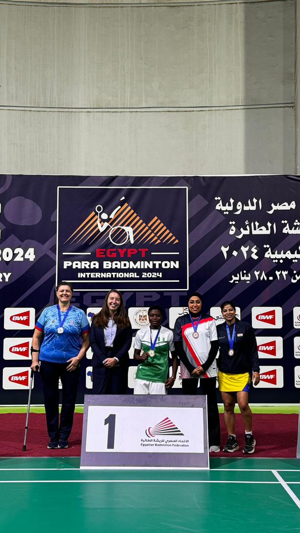 Eniola Mariam, Nigeria’s sensational para badminton player who recently qualified for Paris paralympics coming up later in the year, has again made history by winning three gold medals at the just concluded first Egypt TV Para Badminton International tournament held in Cairo.