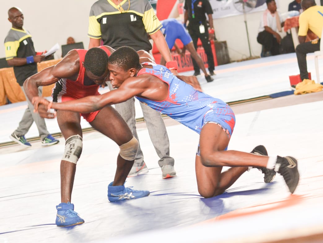 Dick Enenibodi of Edo State in the 60kg Greco-Roman retained his national title to win gold beating Terry Godfrey of Bayelsa State 4 to 3 points in a keenly contested bout at the indoor hall of Samson Siasia Stadium, Destiny ThankGod of Eagle Club claimed bronze.