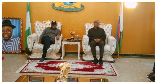 Labour Party’s presidential candidate, Peter Obi on Saturday visited Governor Duoye Diri of Bayelsa State in Yenagoa, the state capital, to sympathise with victims of floods in the state.