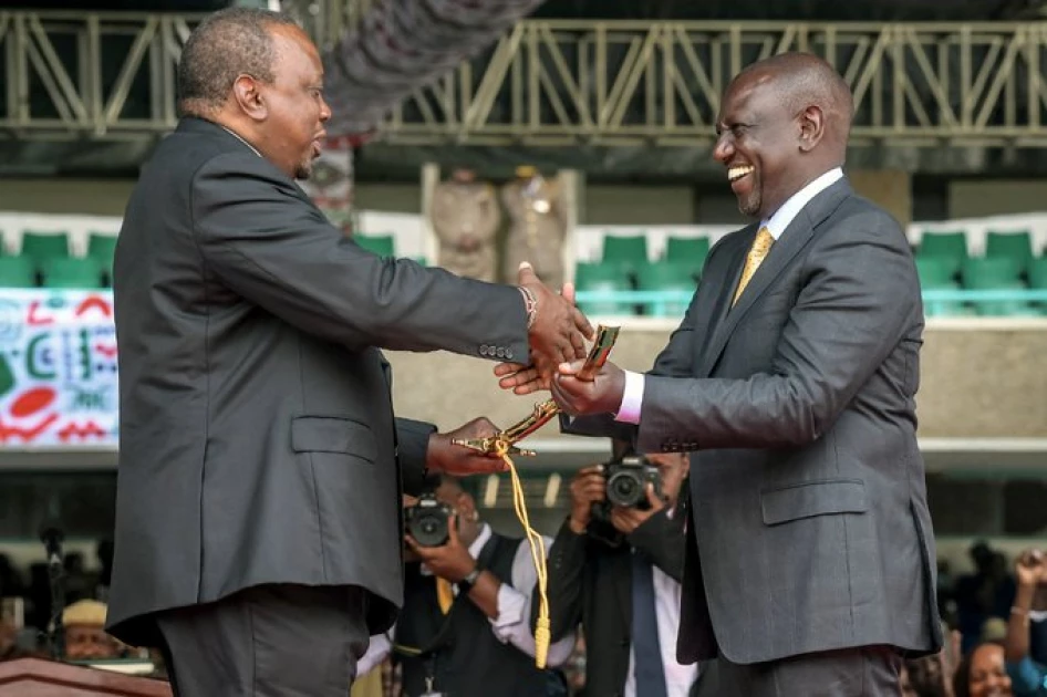 Former President Uhuru Kenyatta handed over the Constitution to Ruto as part of the instruments of power.
