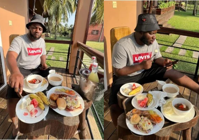- Sabinus made the call via Twitter while sharing photos of him treating himself to a nice English breakfast.