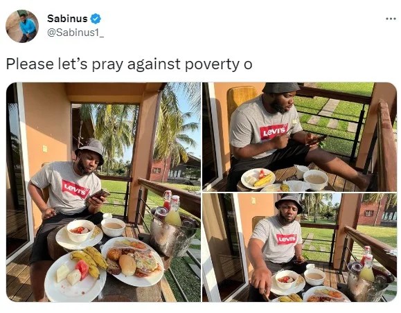 Pray against poverty o– Sabinus says as he enjoys himself