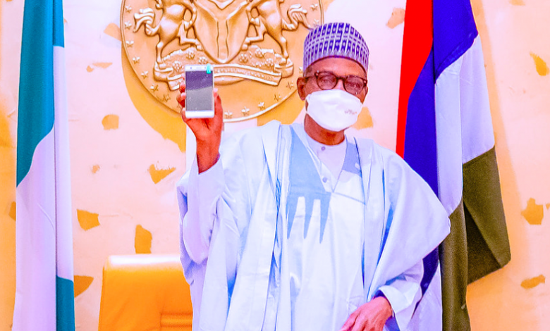 The President received the mobile device at a virtual Federal Executive Council Meeting on Wednesday. Also present at the meeting was Vice President, Yemi Osinbajo, NSA Babagana Monguno, AGF Abubakar Malami, Chief of Staff, Ibrahim Gambari, Minister for Information, Lai Mohammed, Finance Minister, Zainab Ahmed and SGF Boss Mustapha.