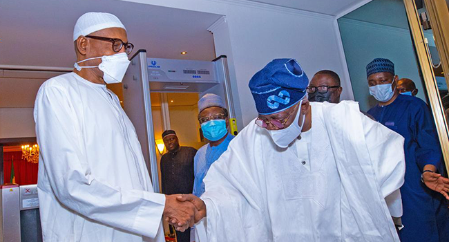 President Muhammadu Buhari on Tuesday received former Lagos State Governor, Asiwaju Bola Ahmed Tinubu in a private visit at his official residence at the State House.