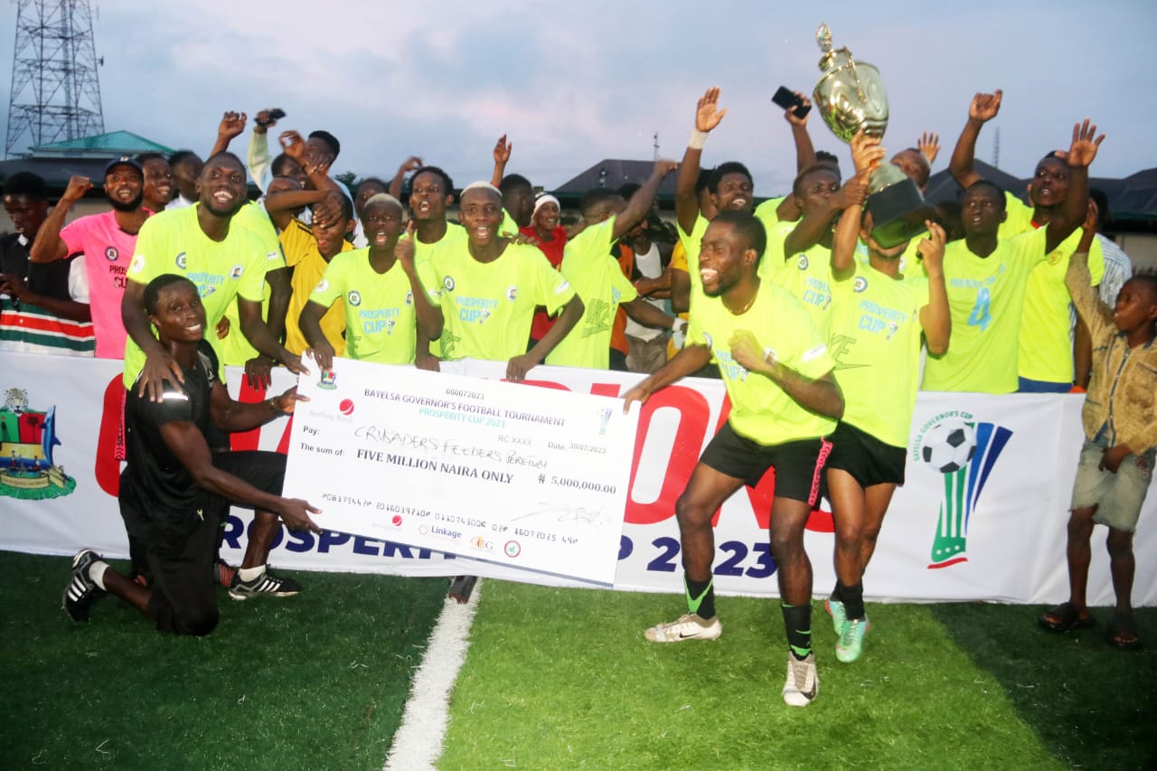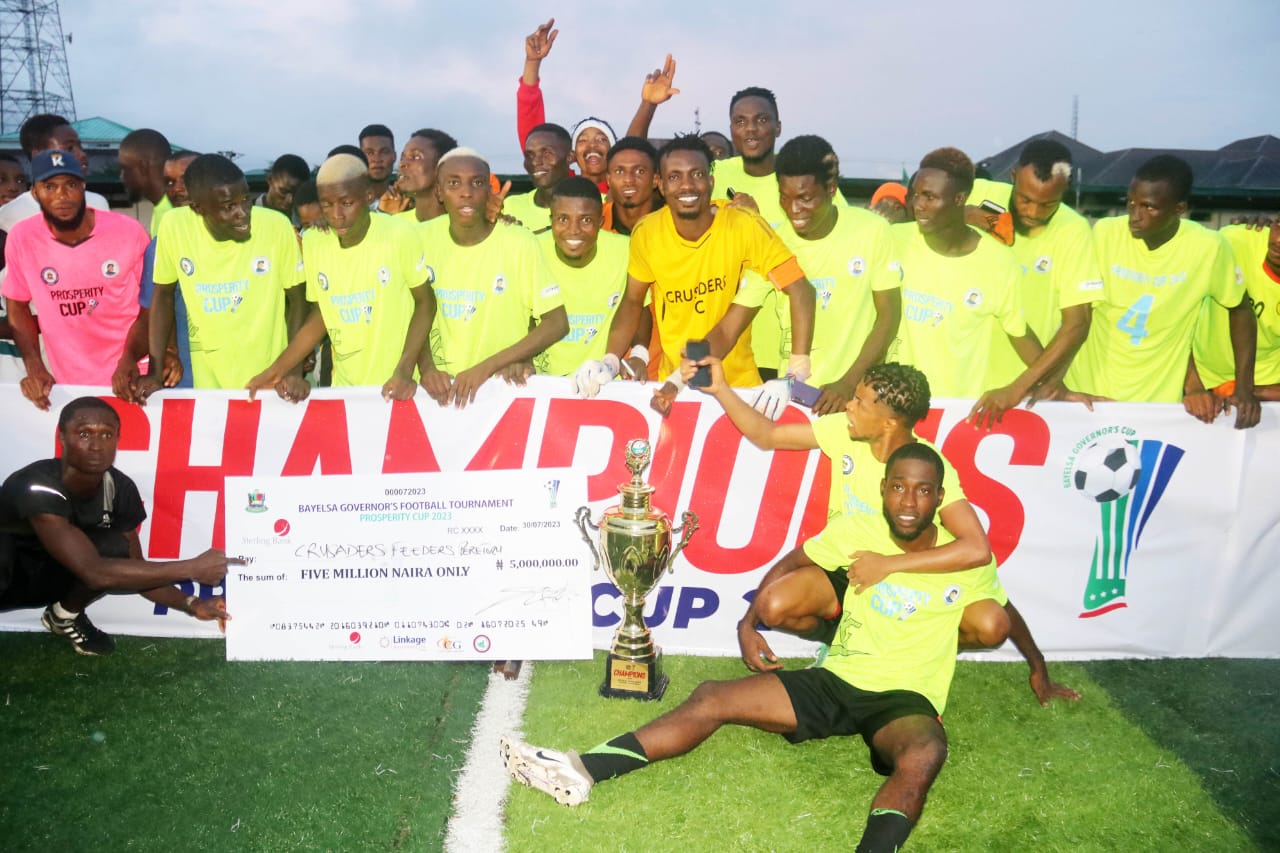 Crusaders Feeders FC of Peretorugbene have emerged champions of the 5th edition of Nigeria’s biggest grassroots football spectacle the Bayelsa Governor’s Football Tournament christened the Prosperity Cup.