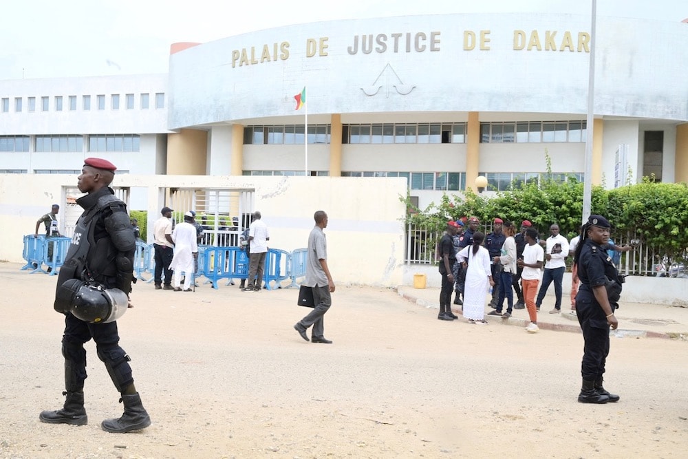 Police officers are seen in front of a courthouse in Dakar, Senegal, 21 September 2022. SEYLLOU/AFP via Getty Images