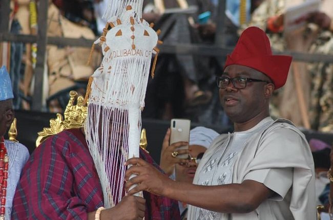 Presenting the staff and instrument of office at an occasion which had in attendance the Vice-President, Professor Yemi Osinbajo, the former Vice-President, Alhaji Abubakar Atiku, the Ooni of Ife, Oba Adeyeye Ogunwusi, the Alaafin of Oyo, Oba Lamidi Olayiwola Adeyemi and Etsu of Nupe, AbdulYahaya Abubakar, Makinde said the presentation was done in accordance with the state Chieftaincy law.