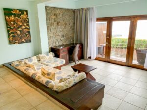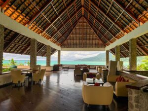 The views on approach into Mahé were beautiful, but it started raining as soon as we touched down and the rain kept up for the rest of the day. We were the only guests in the arrivals area, which connects to the hotel’s main bar and breakfast restaurant.