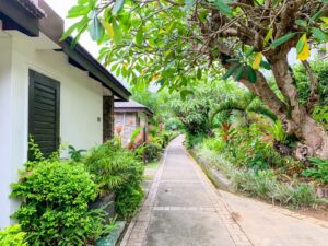 Most of the property has wooden signs to direct you to room blocks and amenities, so the laminated piece of paper tacked to a tree felt rather … tacky … for a luxury resort.