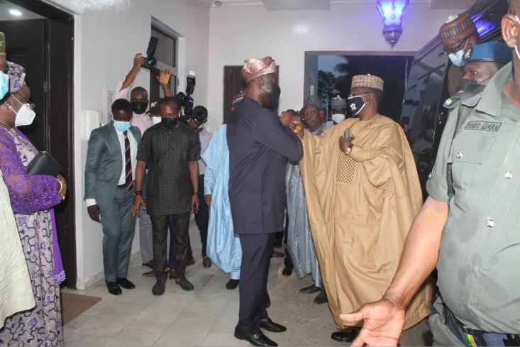 Present at the meeting which is holding at the government house in Agodi are the governors Bello Matawalle (Zamfara), Abubakar Bagudu (Kebbi), Abdullahi Ganduje (Kano), and Abubakar Bello (Niger).