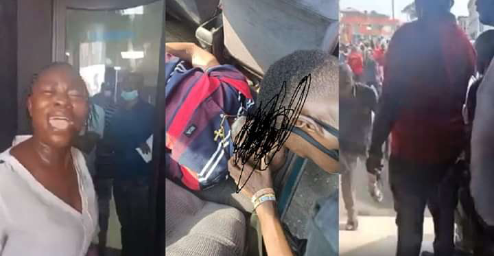 The man was said to have collapsed and died due to hunger, after not being allowed to withdraw, a young lady and two men came to the scene demanding that the bank opens the access door so they could deposit the man’s remains in the banking hall.