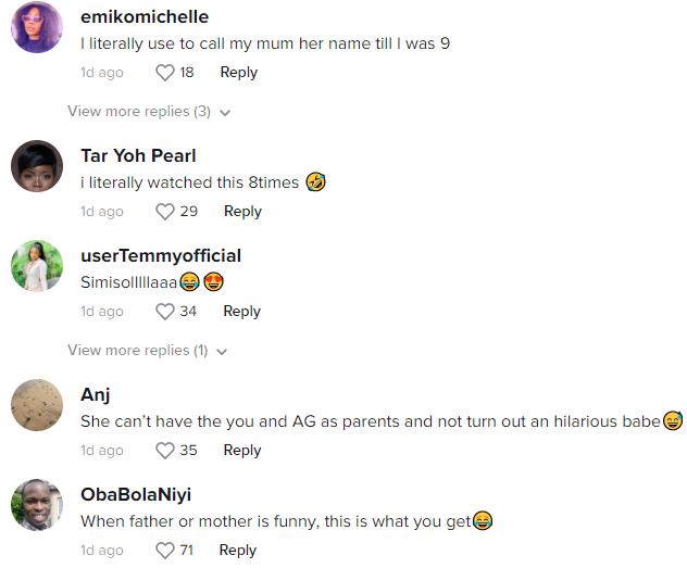 In the video, the mother of one mildly queried her daughter who addressed her by her name, ‘Simisola’.