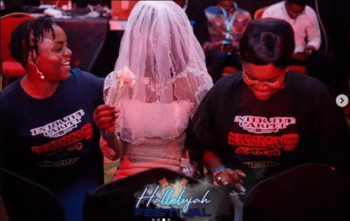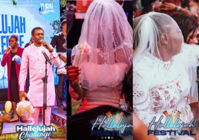 Hundreds of unmarried ladies in wedding gowns invaded Pastor Nathaniel Bassey’s Hallelujah Challenge event at the Eko Hotel and Suites.