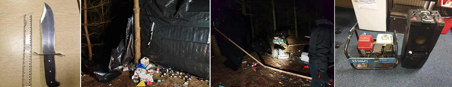 At around 00.55am, patrols attended Whiston woods, near Cumber Lane, following a report that an unlicensed music event was planned in the area. On arrival, officers located around 20 people along with music equipment.