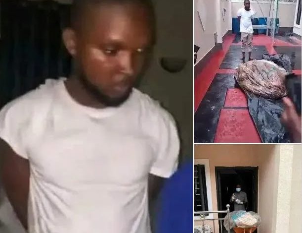 Following the alarm raised by the security personnel, eyewitnesses stormed the suspect’s apartment and found Justina’s body parts in sacks dripping with blood.