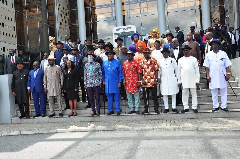 His Excellency, Senator Douye Diri, Governor of Bayelsa State, Sworn- in the 24 Commissioners, at the State Executive Council, Government…