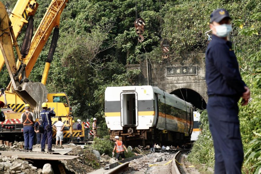 The crash Friday was Taiwan’s worst rail accident in seven decades. An express train hit the truck that had slid down a bank beside the track from the building site. The site’s manager is suspected of having failed to properly engage the truck’s brake.