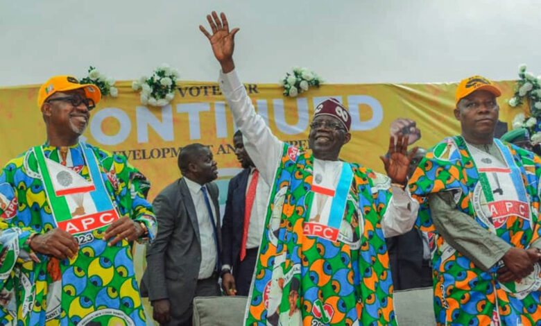 All Progressives Congress (APC) presidential candidate, Bola Ahmed Tinubu and his running mate, Kashim Shettima, during the party’s campaign rally in Abeokuta.