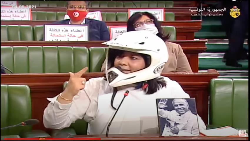 Tunisian MP dons crash helmet, body armour after guards banned from parliament