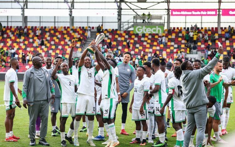 Nigeria celebrate winning the Unity Cup during the Unity Cup Final, London 2025 match between Jamaica and Nigeria at Gtech Community Stadium, Brentford. [Photo Credit/ Imago].