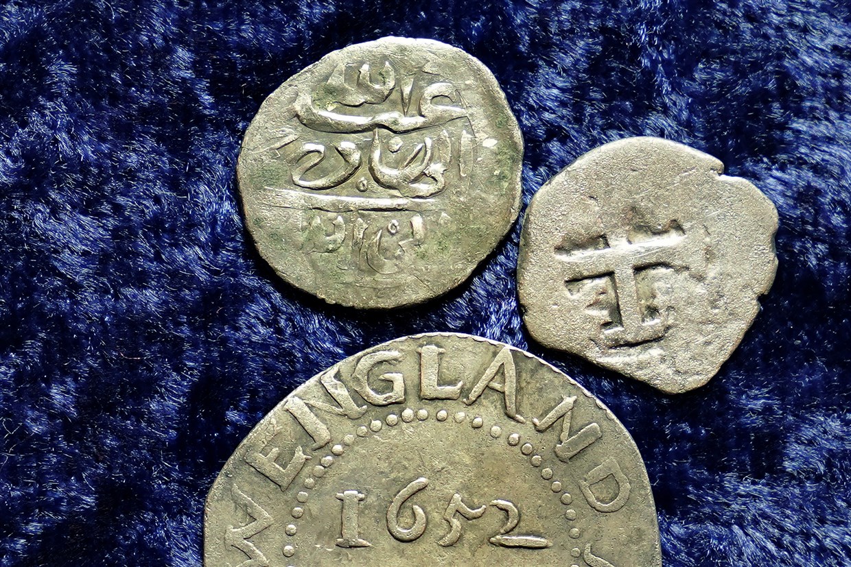 Waving a metal detector over the soil, he got a signal, dug down and hit literal paydirt: a darkened, dime-sized silver coin he initially assumed was either Spanish or money minted by the Massachusetts Bay Colony.