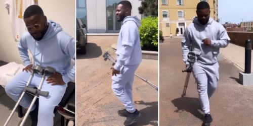 VIDEO: Falz Finally Drops Crutches after One Month of Surgery