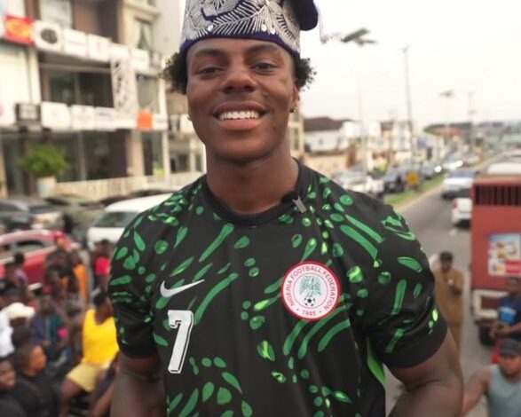 Popular American streamer iShowSpeed was spotted wearing Ademola Lookman’s Super Eagles jersey during his recent tour of Nigeria.