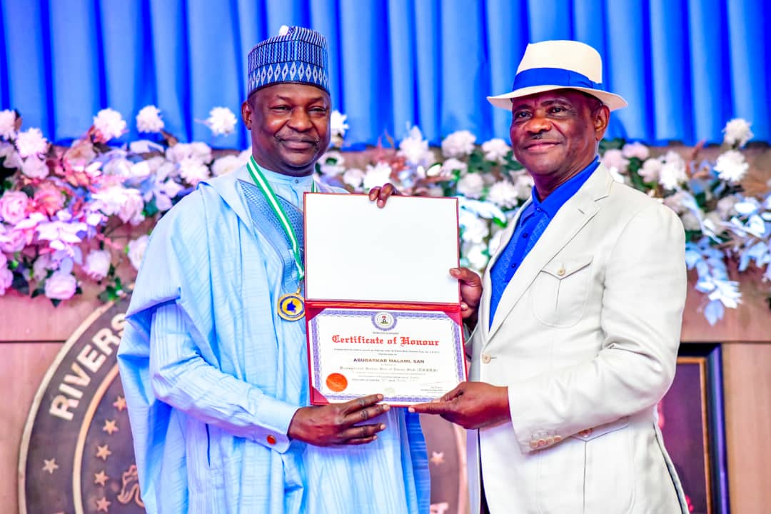 The Attorney General of the Federation and Minister of Justice, Abubakar Malami, SAN, has been conferred with the award of Distinguished Service Star of Rivers State, DSSRS, by the River State governor, Nyesom Wike.