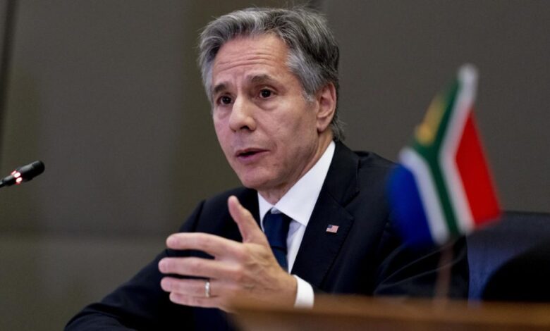 US Secretary of State Antony Blinken, accompanied by South Africa’s Foreign Minister Naledi Pandor (not seen), speaks to members of the media after meeting together at the South African Department of International Relations and Cooperation in Pretoria, South Africa, on August 8, 2022. – Blinken is on a ten day trip to Cambodia, Philippines, South Africa, Congo, and Rwanda. (Photo by Andrew Harnik / POOL / AFP)