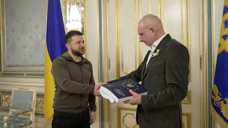 Ukrainian President Volodymyr Zelenskyy formally submitted a completed questionnaire on European Union membership to an envoy on Monday and said he believed this step would lead to his country gaining candidate status within weeks.